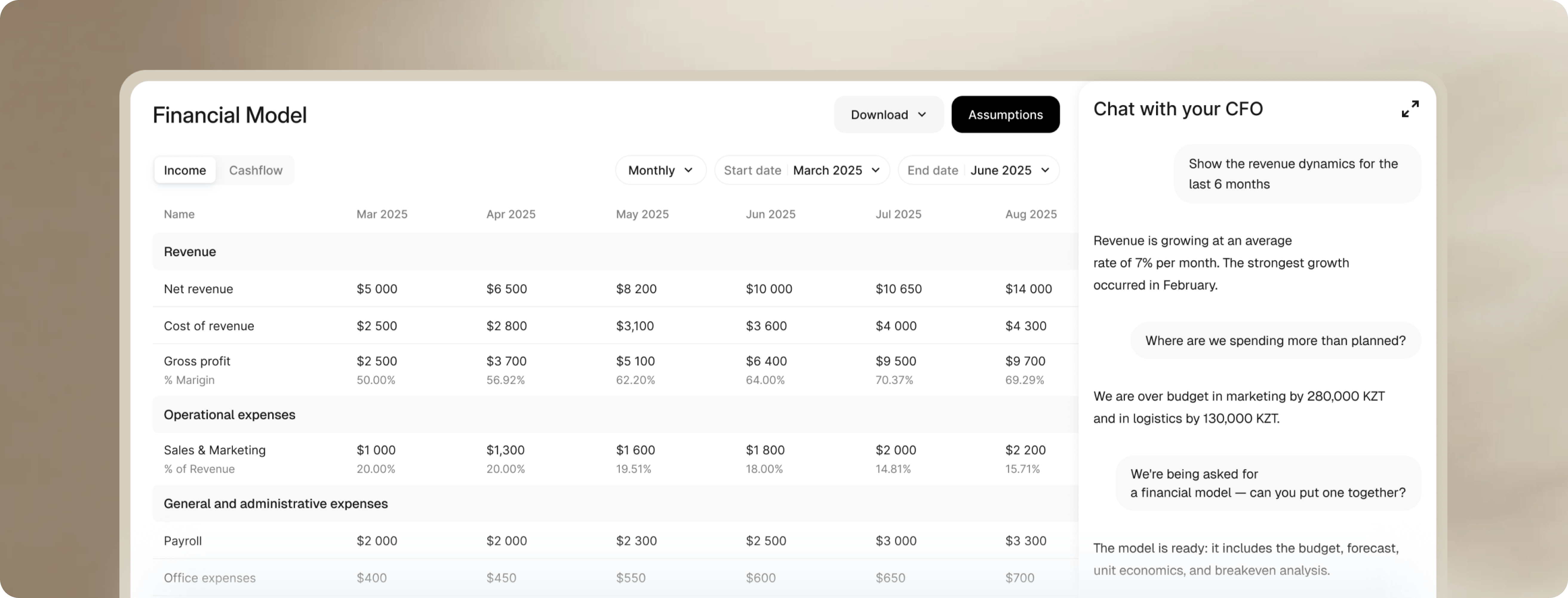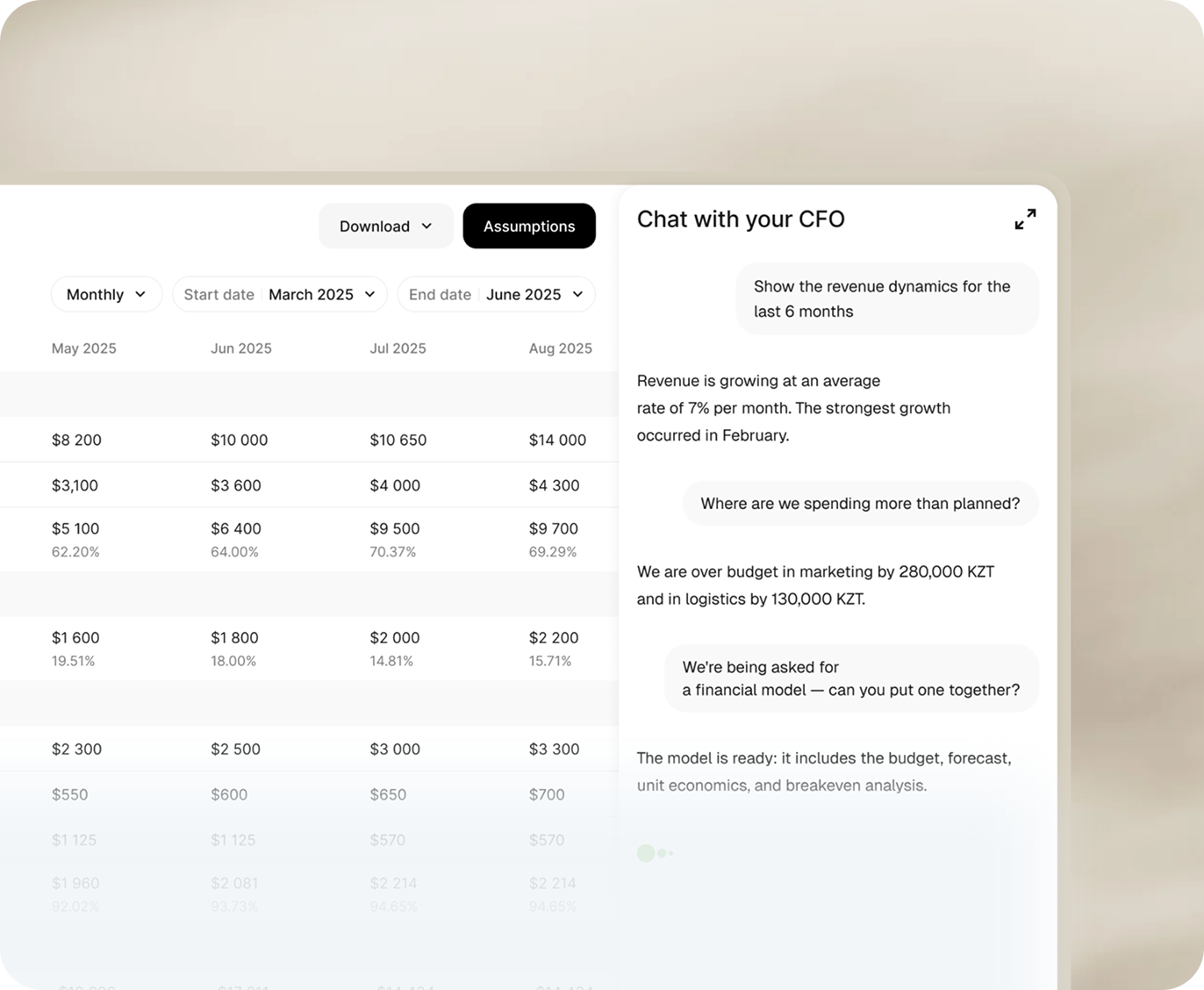 Say goodbye to Excel, human error, and hiring — let your AI assistant handle financial planning